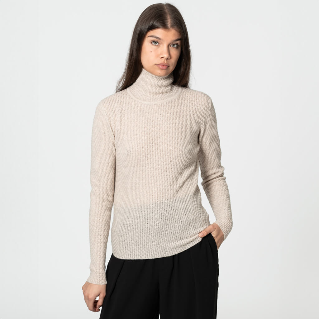 Merino Lace Turtleneck - Almond White