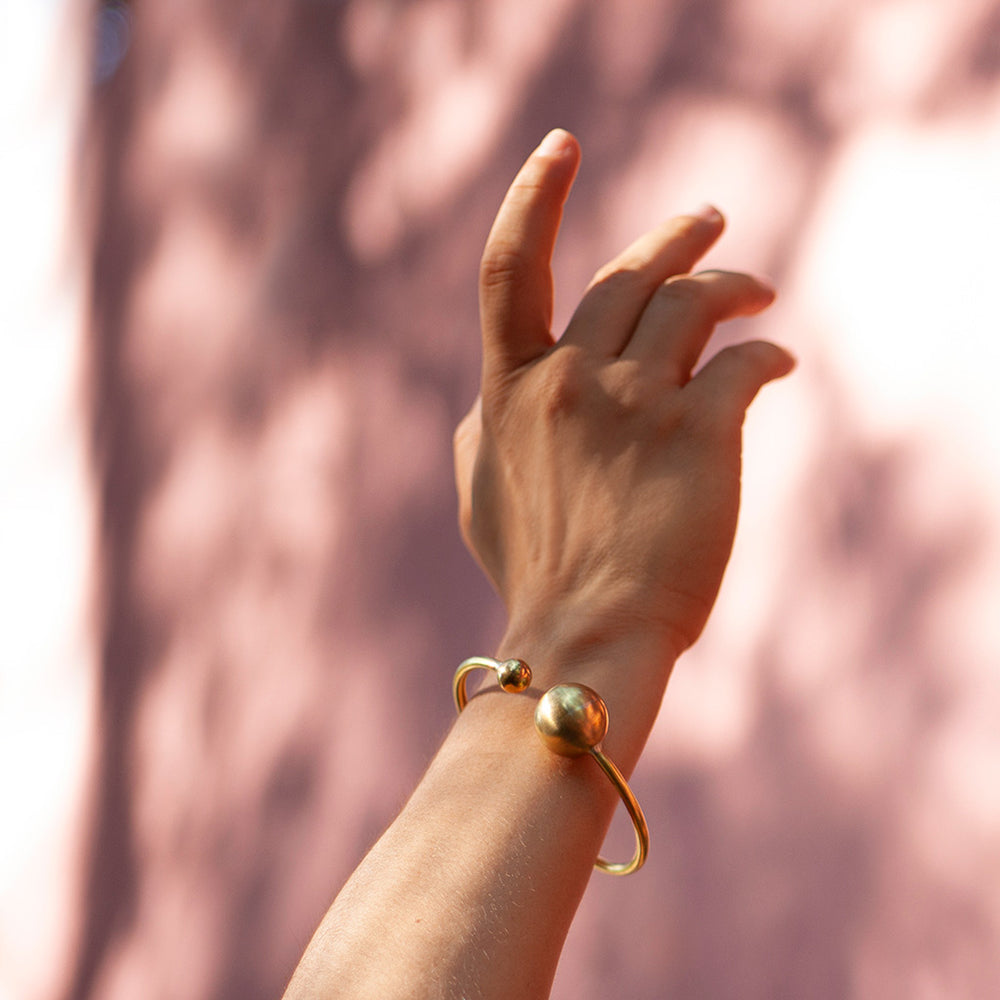 Two orbs surround your wrist wrapping you in strength. Ideal for the modern minimalist, the perfect addition to any capsule wardrobe.