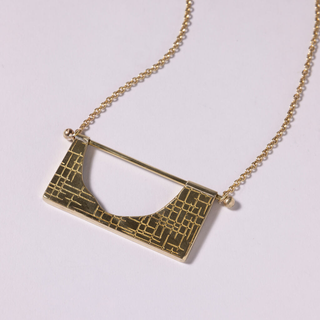 The Hatch Pendant Necklace embodies mid-century modernism with its organic geometry and tactile surface. The pivoting pendant adds to its sculptural design. A refined layering component to wear with other necklaces.