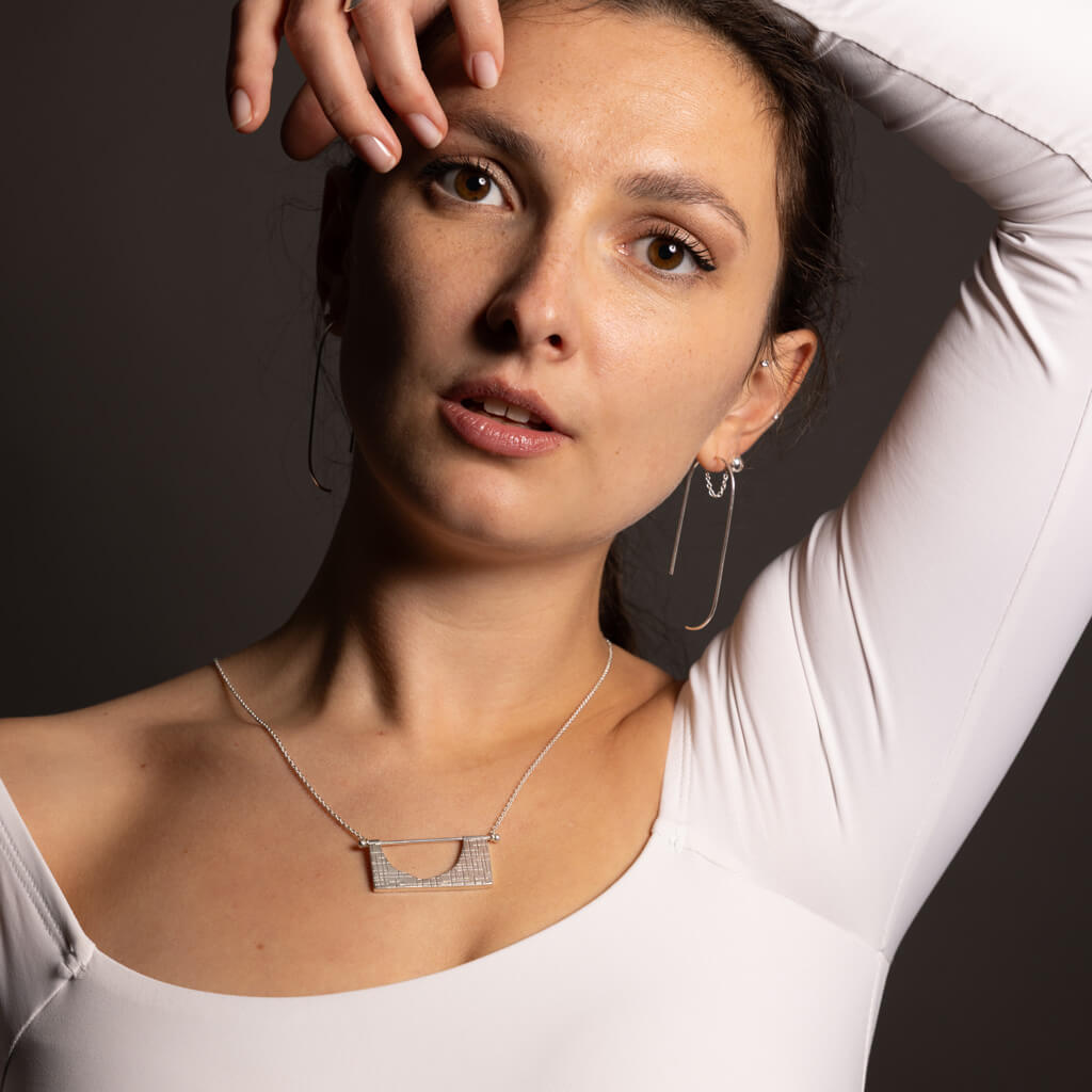 The Hatch Pendant Necklace embodies mid-century modernism with its organic geometry and tactile surface. The pivoting pendant adds to its sculptural design. A refined layering component to wear with other necklaces.