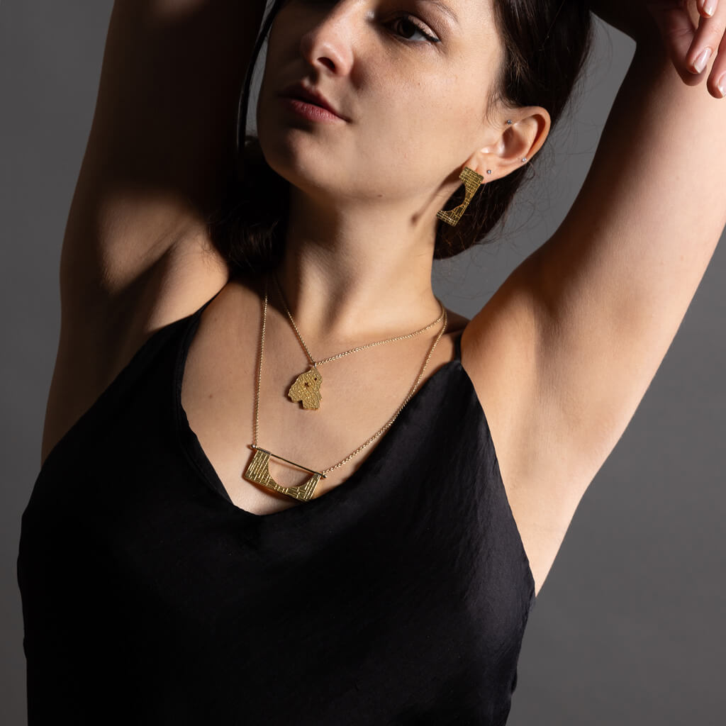 Inspired by natural landscapes, our Terrain Necklace evokes the undulating edges of Mother Earth. This shape is not found on a map, but rather represents the space we inhabit as our shared home. Designed to wear on its own or layered with other necklaces.