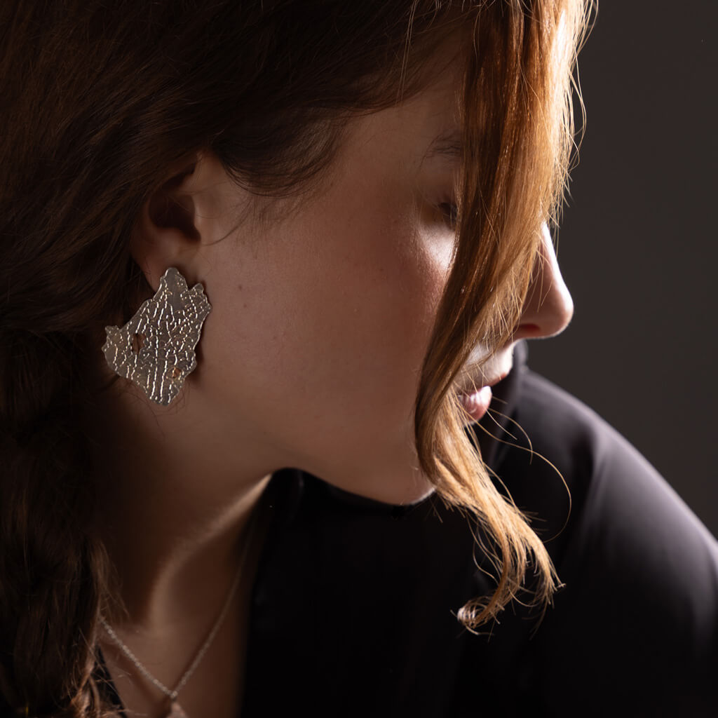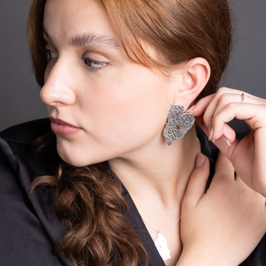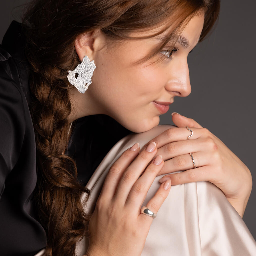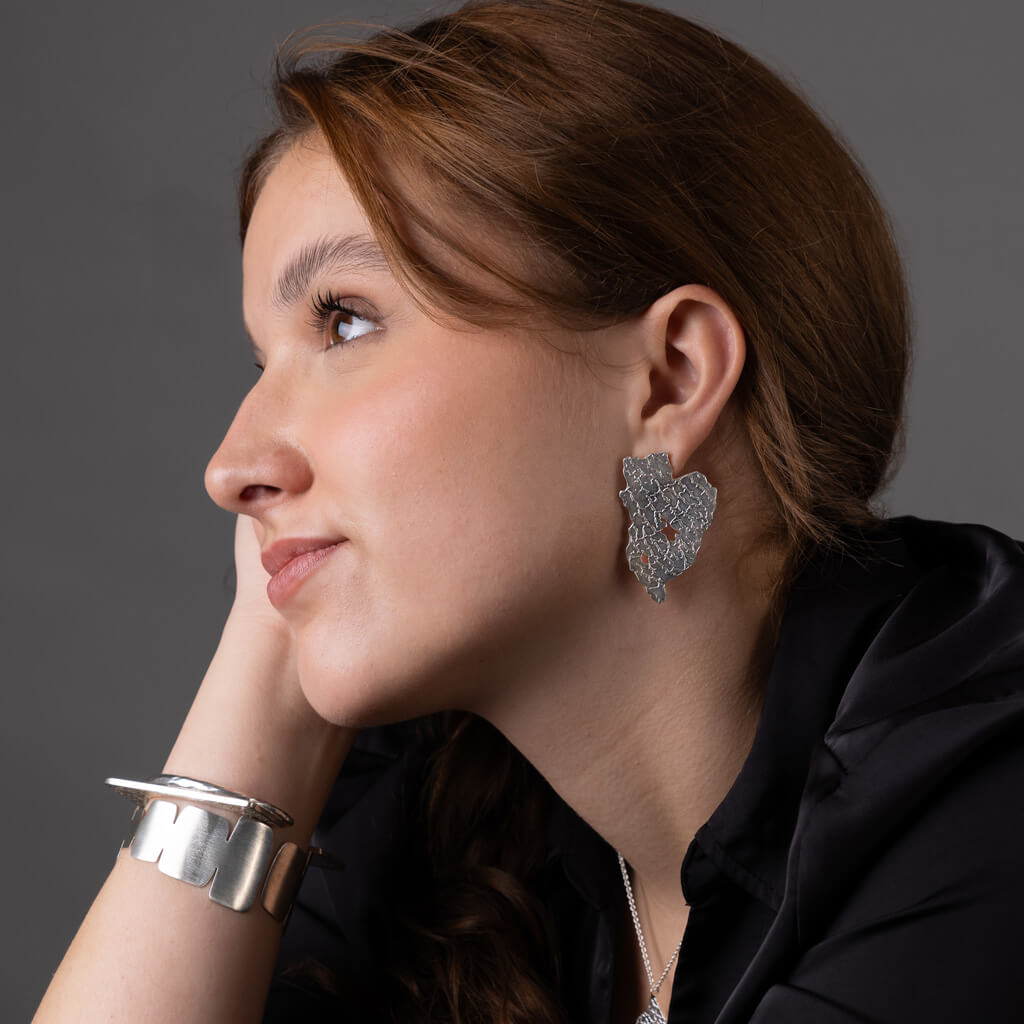Our Terrain Statement Earrings capture the spirit of the unknown. Each piece features organic undulations and deliberately unfinished edges that evoke earth's untamed character. Handcrafted to celebrate imperfection, these mismatched statement earrings blend sculptural presence with wearable sophistication, carrying a reminder that while we may come from different places, we have more in common than not.